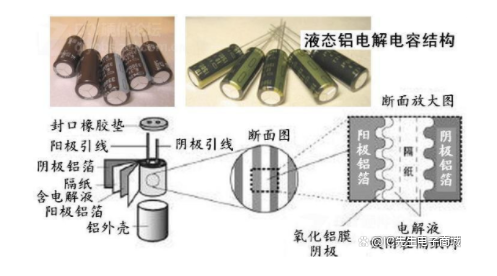 电解电容的金属箔为正极,与正极紧贴金属的氧化膜是电介质,阴极由导电材料、电解质和其他材料共同组成。